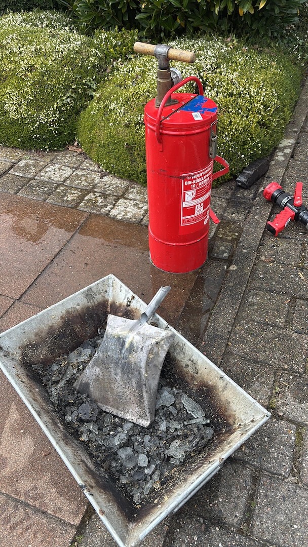 Bei Eintreffen der Feuerwehr bestätigte sich die erste Meldung, das Feuer war jedoch bereits durch ein Feuerwehrmitglied gelöscht worden. Personen befanden sich nicht in Gefahr. Ein Trupp unter Atemschutz ging zur weiteren Erkundung in das Gebäude vor und entfernte das Brandgut aus dem Haus. Im Rahmen der Nachlöscharbeiten kam ein D-Rohr zum Einsatz. Das Gebäude wurde mit einem Drucklüfter belüftet und entraucht. Zur Brandursache kann die Feuerwehr keine Angaben machen.