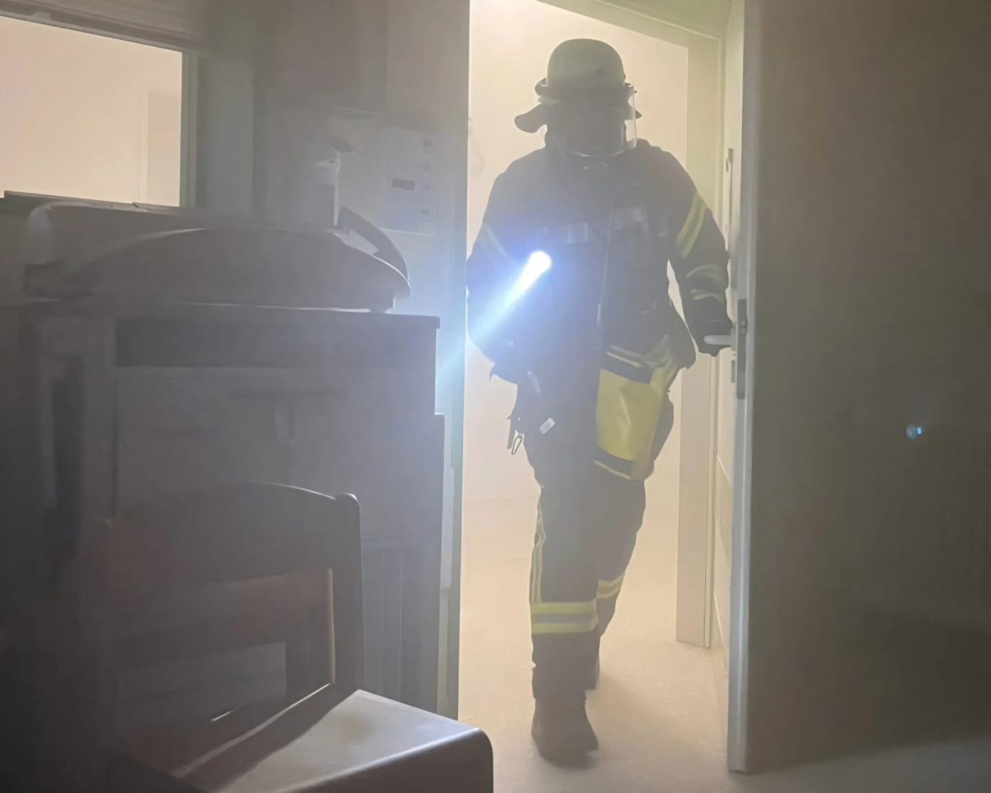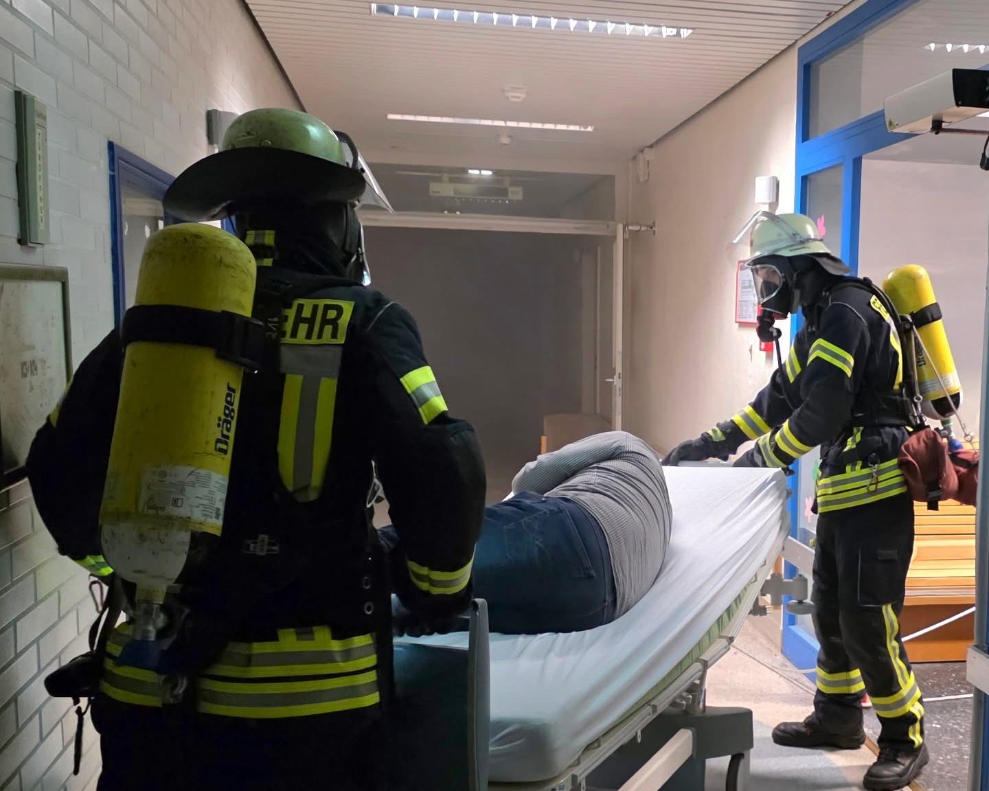 Zunächst wurden die ehrenamtlichen Feuerwehrleute in die ehemalige Kinderklinik des Allgemeinen Krankenhauses Celle alarmiert. Die Räumlichkeiten stehen aufgrund von Umbauarbeiten gegenwärtig leer und konnten so für ein realistisches Übungsszenario genutzt werden.