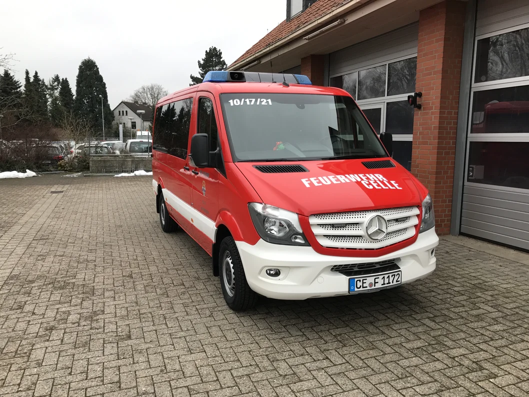 Das MTF dient zur Beförderung von Feuerwehrangehörigen und als Einsatzleitwagen.