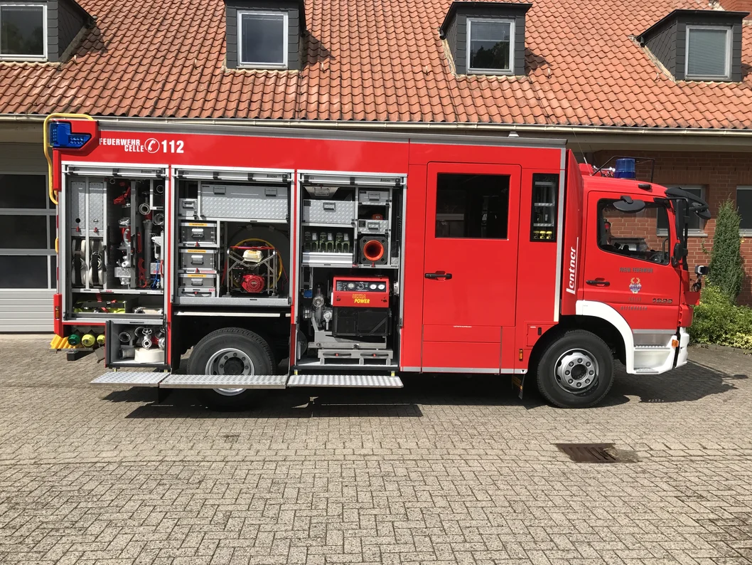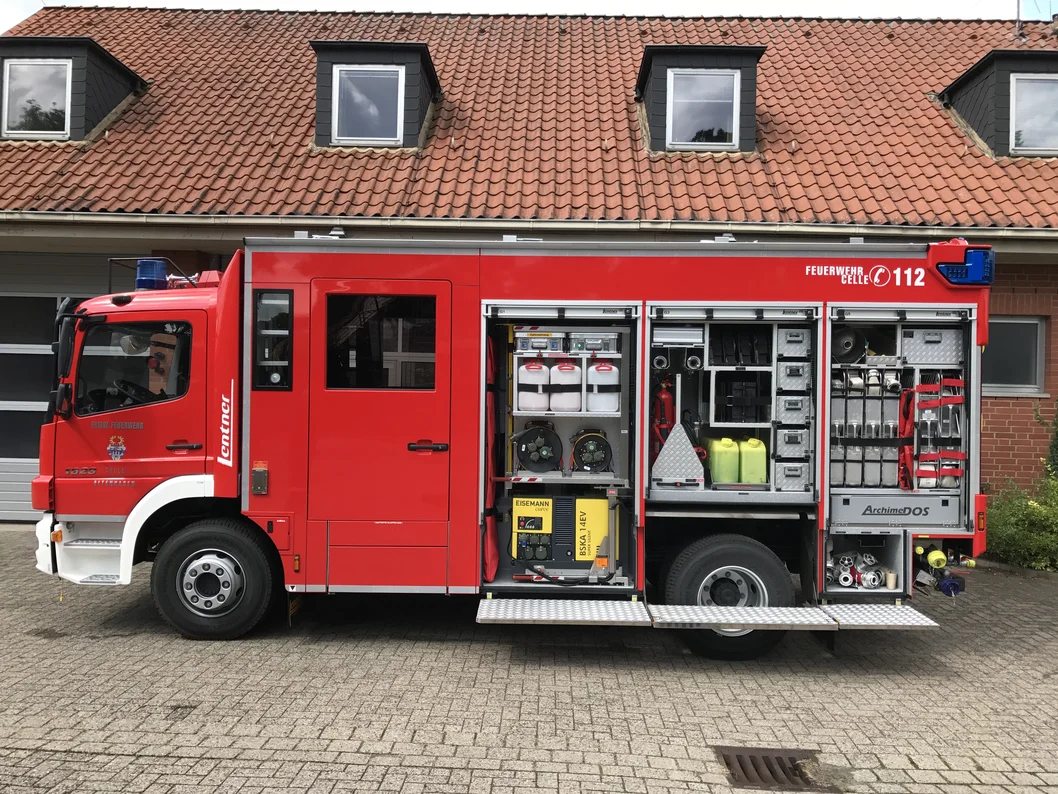 - Umfangreiche Beladung: Atemschutzgeräte, Schläuche, Werkzeug, Stromerzeuger, Tauchpumpe, uvm.