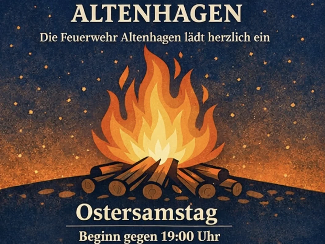 Am Ostersamstag findet das jährliche Osterfeuer in der Verlängerung der Straße "Am Grandberg" in Altenhagen statt. Das Osterfeuer wird gegen 19:00 Uhr angezündet. Für Speis und Trank ist gesorgt, es gibt Pommes, Bratwurst und heiße sowie kalte Getränke.